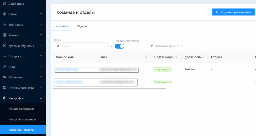 Зашла в Настройки -> Команда и отделы -> Создать приглашение.
