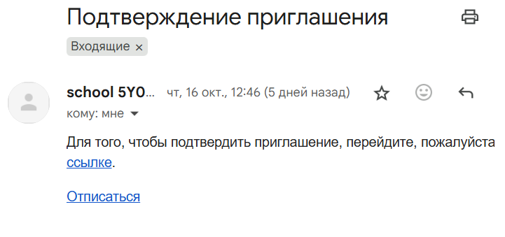 На почту мне пришло скромное письмо с просьбой подтвердить приглашение. При переходе по ссылке из письма сразу попала в админку школы.